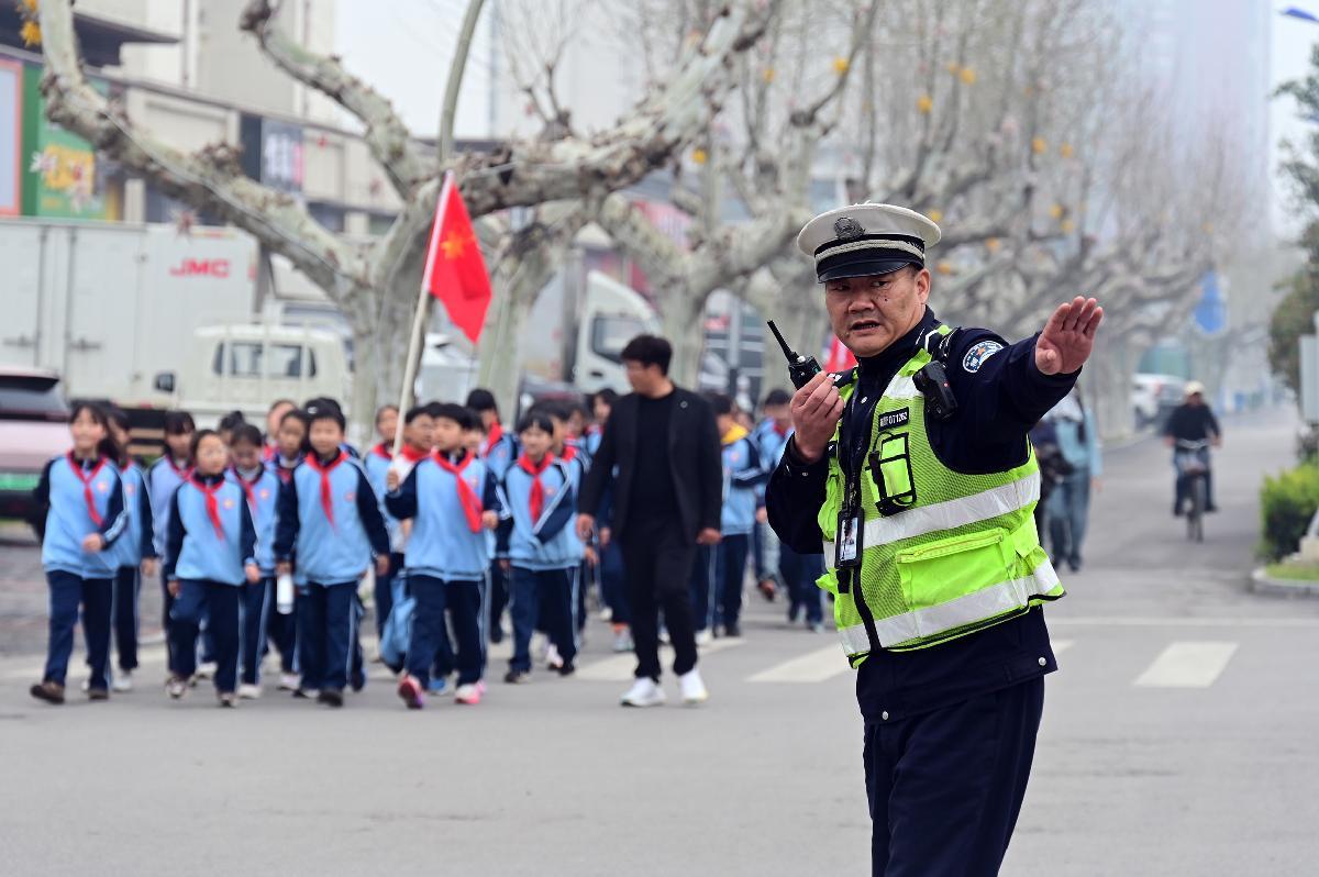 3月31日,安徽省固鎮(zhèn)縣第五小學(xué)組織學(xué)生到城西公園春游。固鎮(zhèn)縣公安局交管大隊(duì)組織警力在沿途各路口指揮疏導(dǎo)交通,確保師生安全。