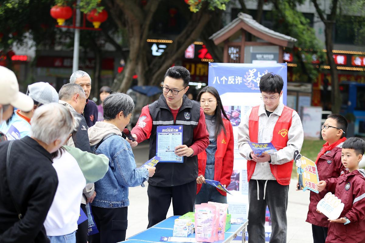 4月1日,春假第一天。四川省樂山市公安局治安管理支隊(duì)聯(lián)合市凌云義警協(xié)會(huì)、樂山師范學(xué)校附屬小學(xué)、海棠街道縣街社區(qū)在海棠公園開展“反電詐進(jìn)社區(qū)”主題宣傳。