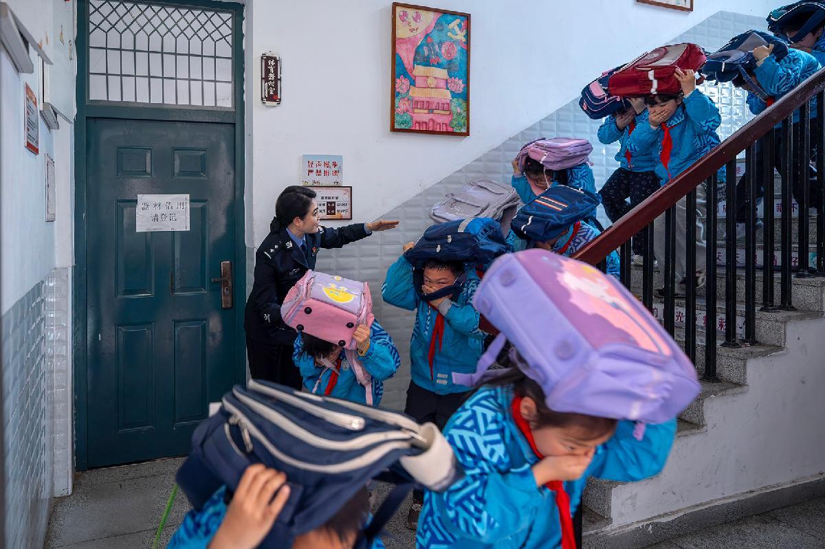 3月30日,是第31個(gè)全國中小學(xué)生安全教育日。山東省棗莊市市中區(qū)東湖小學(xué)學(xué)生在消防救援人員的引導(dǎo)下進(jìn)行校車應(yīng)急逃生演練活動(dòng)。
