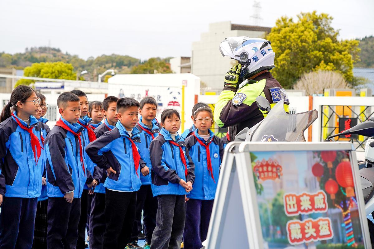 3月30日,浙江省岱山縣公安局交通警察大隊(duì)民輔警走進(jìn)轄區(qū)蓬山小學(xué),開展“安全進(jìn)校園”主題宣傳活動(dòng)。