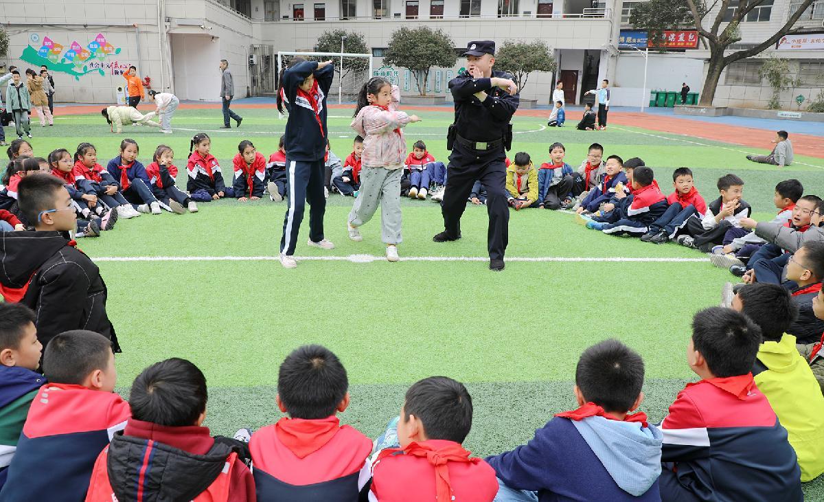 3月27日,江西省九江市公安局潯陽分局廬山南路派出所民警走進(jìn)轄區(qū)湖濱小學(xué),為同學(xué)們普及安全防范知識。