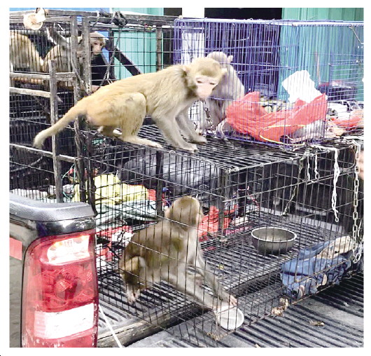 ▲ 海南省樂東黎族自治縣森林公安局解救了一批被非法獵捕的亞熱帶獼猴。 本報記者 邢東偉 本報通訊員 吳海青 攝