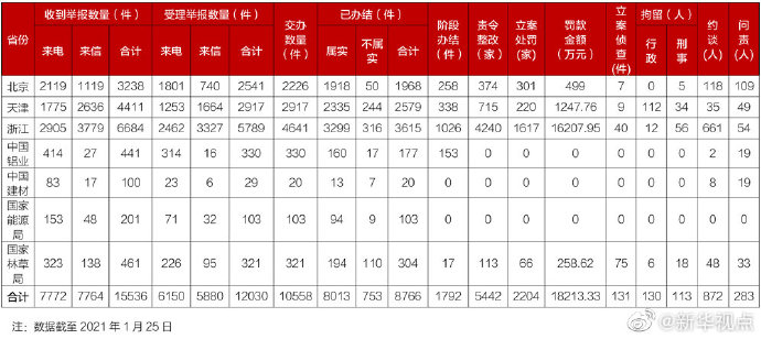 生態(tài)環(huán)境部29日通報(bào),截至2021年1月25日,第二輪第二批中央生態(tài)環(huán)保督察受理的群眾舉報(bào)已辦結(jié)8766件,處罰金額約18213.33萬元,立案偵查131件,行政拘留130人,刑事拘留113人,約談872人,問責(zé)283人。(記者高敬,圖片來源:生態(tài)環(huán)境部)