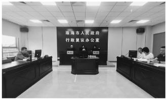 圖為7月23日,廣東省珠海市人民政府在市民中心行政復議聽證室,就某機械租賃有限公司不服市自然資源局責令改正違法行為通知提起行政復議一案舉行聽證會。 廣東省司法廳供圖