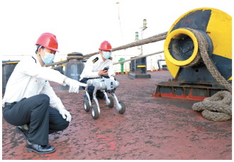 近日,南京海關所屬揚州海關聯(lián)合杭州宇樹科技有限公司探索輪足式機器人在入出境船舶智慧查驗領域應用,并首次上船嘗試開展相關查驗。通過深度融合人工智能與機器人技術,加快推進?;分悄茏R別系統(tǒng)與檢疫處理效能評估體系建設,為實現(xiàn)海關業(yè)務流程優(yōu)化再造、監(jiān)管作業(yè)全面升級提供更多優(yōu)質(zhì)方案。圖為海關關員在船舶甲板測試“機器狗”機動性和通過性。