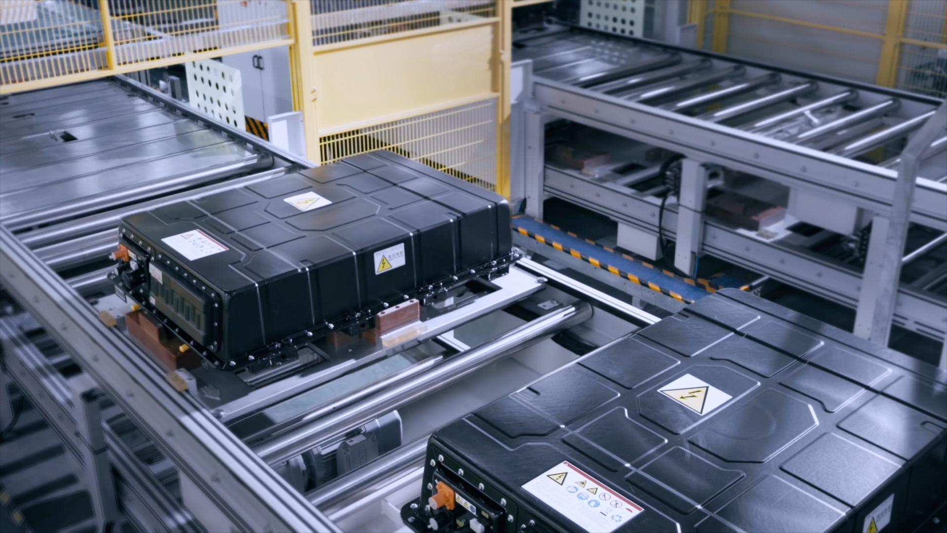 在寧德時代工廠,新能源汽車動力電池源源不斷下線出廠。