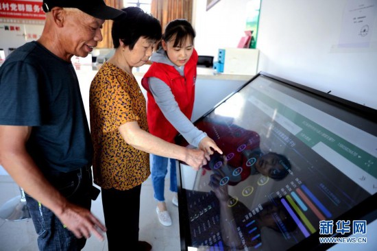 6月23日,在長(zhǎng)興縣小浦鎮(zhèn)光耀村便民服務(wù)大廳,巾幗志愿者通過生活垃圾分類智慧大數(shù)據(jù)平臺(tái),為村民講解垃圾分類。