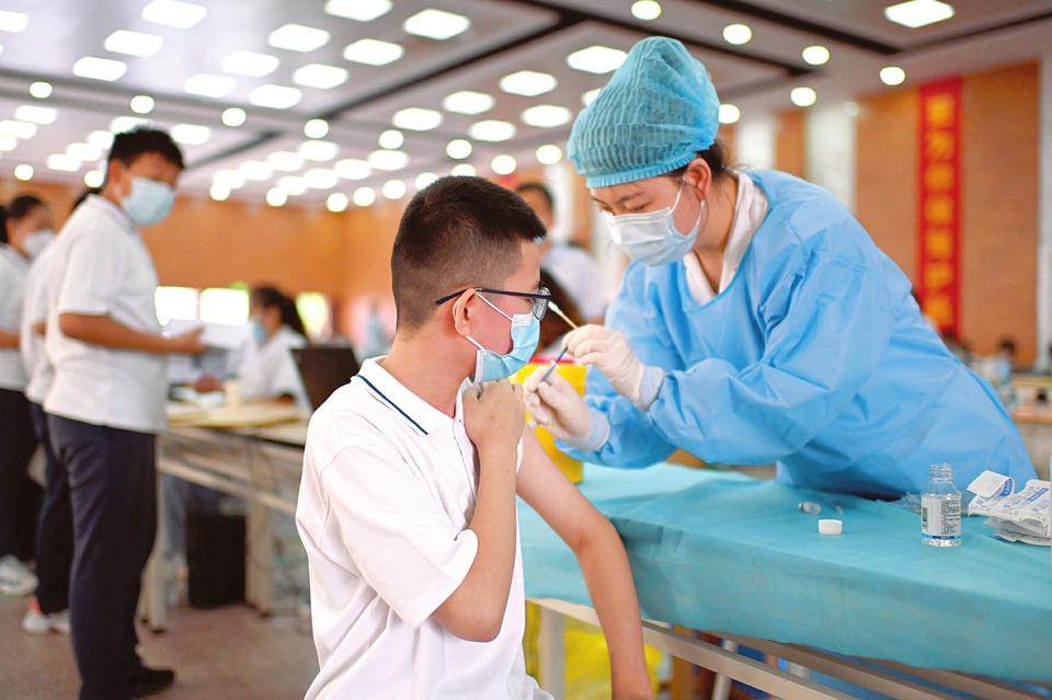 8月27日,太原師范學(xué)院附中,初二年級學(xué)生正在有序接種新冠疫苗。秋季開學(xué)在即,如何筑牢校園防疫網(wǎng),是學(xué)校、老師、家長以及學(xué)生們都十分關(guān)心的問題。目前,太原市已經(jīng)開始12歲至14歲未成年人接種新冠疫苗的工作,預(yù)計(jì)在開學(xué)期間,太原市該年齡段的疫苗接種工作將全部完成。(記者李兆民攝)