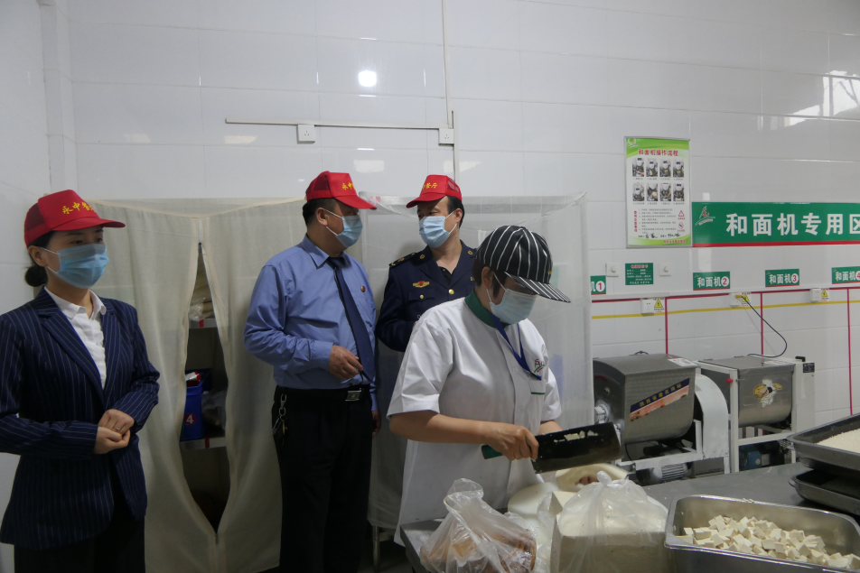 為進一步筑牢校園及周邊食品安全防線,近日,陜西省咸陽市永壽縣人民檢察院充分發(fā)揮公益訴訟檢察職能,聯(lián)合縣市場監(jiān)督管理局共同開展校園食品安全檢查活動。圖為檢查人員就校園食堂食品安全情況進行監(jiān)督走訪,確保學(xué)生食品安全。