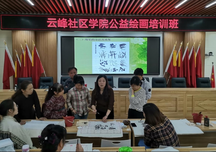 云峰社區(qū)居民大部分為高學(xué)歷、高收入人群,然而這樣的社區(qū)最大的痛點在于“同住一棟樓,相逢不點頭”,居民之間鄰里關(guān)系淡漠、缺少交流,對社區(qū)融入感、需求感低。為打破這種局面,社區(qū)與駐地高校湘潭醫(yī)衛(wèi)職業(yè)技術(shù)學(xué)院共同開辦了“云峰社區(qū)學(xué)院”,還與20多家機構(gòu)開展公益合作,目前已開設(shè)了書法、繪畫、合唱、攝影、烘焙等12個班,學(xué)員800多人。