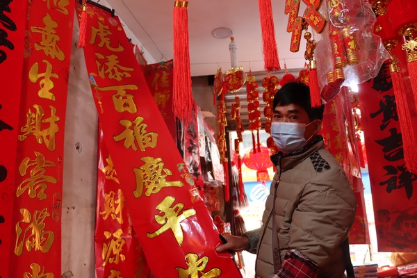 “今年是虎年,我特意來買一副含虎字的對(duì)聯(lián),希望帶來好運(yùn),虎年家人平平安安。”市民吳茂德說。