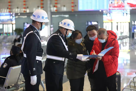 今年春運(yùn)期間,為進(jìn)一步提升鐵警執(zhí)法為民形象,山西大同鐵路警方警務(wù)督察人員深入旅客群眾中,對(duì)民警履職盡責(zé)、執(zhí)法形象、為民服務(wù)等情況開展實(shí)地檢查與民意調(diào)研,切實(shí)了解實(shí)情,掌握旅客群眾需求,讓旅客出行體驗(yàn)更美好。圖為警務(wù)督察人員調(diào)研民意。