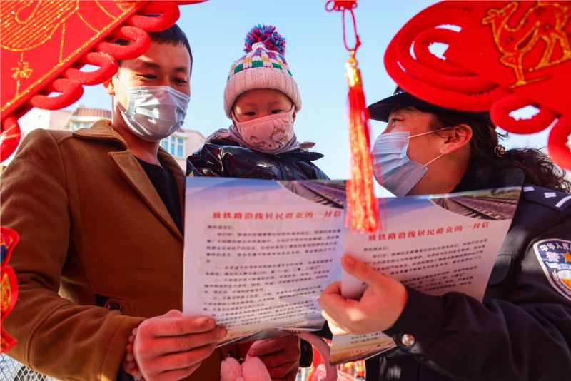 近日,烏魯木齊鐵路公安局哈密公安處哈密站派出所民警前往農(nóng)貿(mào)市場(chǎng)“趕集”,向廣大群眾、商鋪業(yè)主開(kāi)展普法宣傳教育。其間,民警向群眾開(kāi)展冬季防火、防詐騙等安全教育,有效提升群眾安全意識(shí),共筑平安鐵路。圖為民警向群眾普及安全知識(shí)。