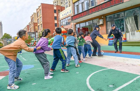 近年來(lái),公安機(jī)關(guān)已選派30余萬(wàn)名業(yè)務(wù)能力強(qiáng)、經(jīng)驗(yàn)豐富的公安民警兼任法治副校長(zhǎng),深入學(xué)校組織開展形式多樣的安全教育活動(dòng)。圖為安徽省涇縣公安局開發(fā)區(qū)派出所民警開展法治副校長(zhǎng)進(jìn)校園活動(dòng)。 潘涯磊 攝