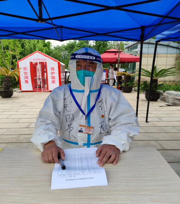每天下沉期間,黨國榮同志都會在各個點位巡邏,哪里需要就到哪里補(bǔ)位,幾天時間,他當(dāng)了“錄入員”、“消殺員”、“搬運工”,成為了“全能”防疫工作者。有時同志們看他太辛苦,讓他先去休息,他總是謙虛地婉拒:“這不算什么,大家才是最辛苦的?!碑?dāng)領(lǐng)導(dǎo)擔(dān)心他連續(xù)上崗身體吃不消、提出更換一位同志時,他卻向主管局長和部門領(lǐng)導(dǎo)提出了繼續(xù)堅守的請求:“感謝組織和領(lǐng)導(dǎo)的關(guān)心,但我是軍人出身,退伍不能‘褪色’,再說我還有一定的疫情防控經(jīng)驗,現(xiàn)在正是組織需要我的時候,我申請繼續(xù)出戰(zhàn)!”