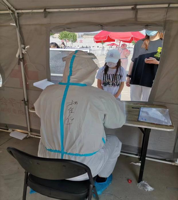 按照朝陽區(qū)疫情防控工作要求,經(jīng)朝陽區(qū)稅務(wù)局黨委統(tǒng)籌安排,自4月28日起每日調(diào)配12名干部下沉支援十八里店鄉(xiāng)十里河村。時間緊迫、任務(wù)重大,楊保華同志第一個報名,并主動“承包”了4月28日至今的領(lǐng)隊任務(wù),連續(xù)兩周作為“排頭兵”沖在前線。每天清晨5點多,居住在西三環(huán)的他就到達(dá)點位,為同志們做好前期準(zhǔn)備工作;到了夜間23點,他還在收集各種情況和信息,在群里做聯(lián)系協(xié)調(diào)。下沉期間他全天候值守服務(wù),隨時響應(yīng),面面俱到,一起工作的同志們看到他仿佛不知疲倦的身影,都問他累不累,他卻笑著說:“不累不累,這可比98年抗洪救災(zāi)的時候好多了!”