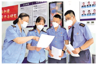 還沒來得及進(jìn)行工作分工,所里的電話就開始響個不停?!奥犝f你們不能現(xiàn)場辦公了,營業(yè)執(zhí)照去哪里辦理?”“我們還能不能開門營業(yè)?現(xiàn)在是什么政策?”“不在管控區(qū)域的是不是也要關(guān)門?我們該怎么辦?”王麗俠一面讓劉瑩安撫來電人的情緒,一面把問題都記錄下來,梳理匯總后向上級匯報,并逐個回電話,第一時間把準(zhǔn)確的疫情防控政策回復(fù)給大家。