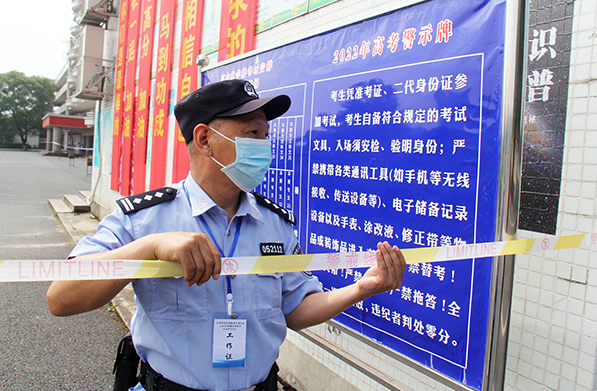 “考試結(jié)束,請(qǐng)考生停止作答?!?月9日上午11時(shí)許,隨著考場(chǎng)鈴聲響起,2022年高考最后一場(chǎng)考試結(jié)束了。在護(hù)送學(xué)生和家長(zhǎng)有序離開(kāi)后,老吳也用汗水和堅(jiān)守交出了從警生涯最后一次護(hù)航高考的平安答卷。