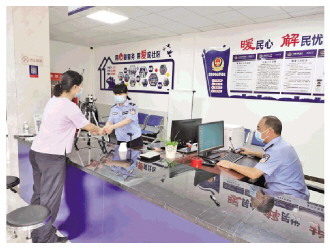 圖③ 余忠明夫婦在警務(wù)站為群眾辦事。