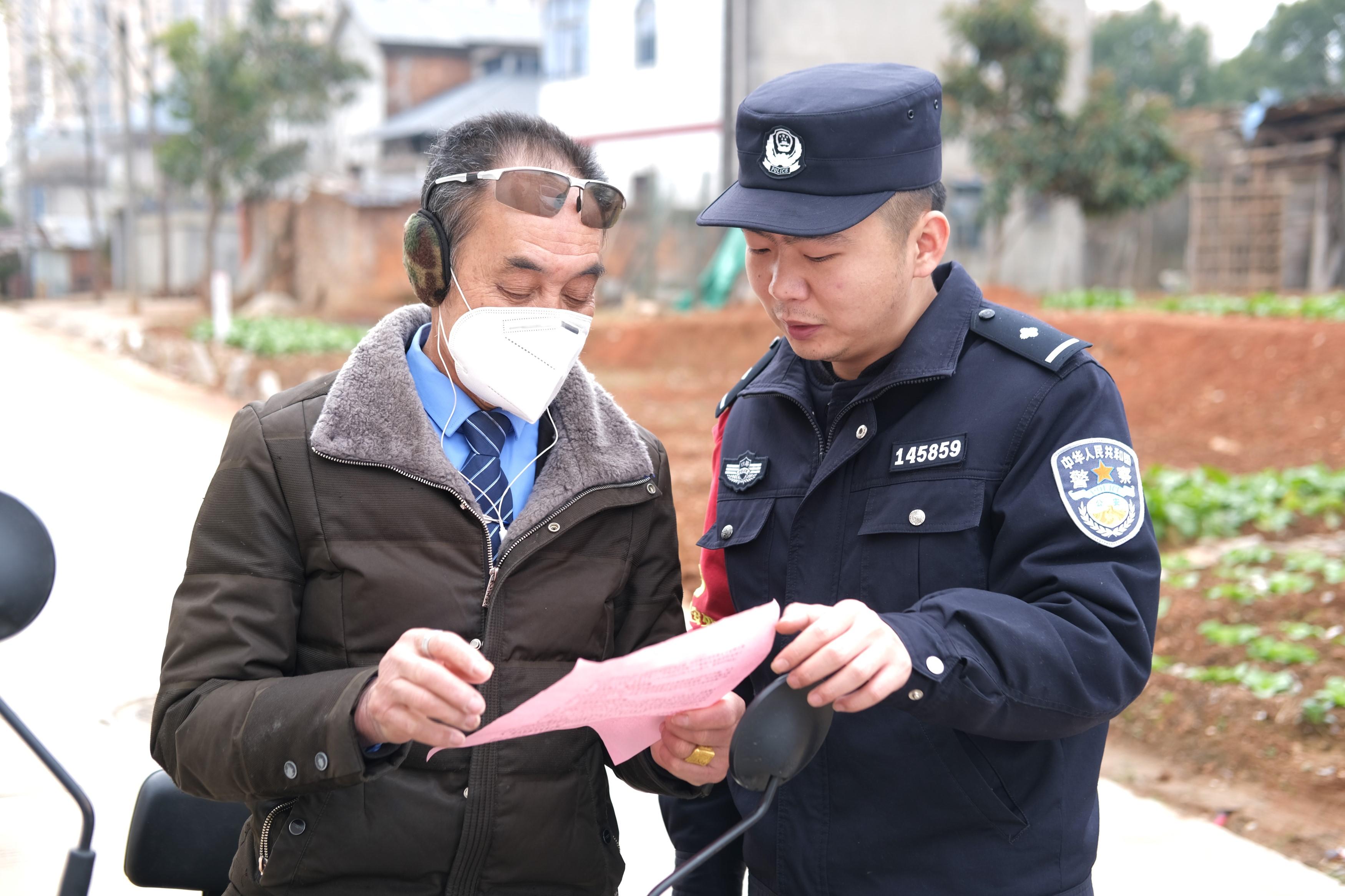 “小劉警官來了……”村民的招呼聲此起彼伏。劉洪均就像到老友家做客一樣自然地回應:“來轉(zhuǎn)轉(zhuǎn),來轉(zhuǎn)轉(zhuǎn)。”隨后便和幾位路邊的老人拉起了家常。閑談之中,他一邊給老人們發(fā)放安全單,一邊講授反詐常識。