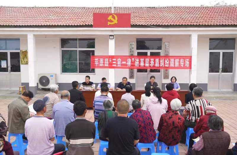 平原縣政法系統(tǒng)充分發(fā)揮法治作用,加快推進(jìn)基層社會(huì)治理現(xiàn)代化,開(kāi)展“三官一律”即“檢察官、法官、警官和律師(法律工作者)”進(jìn)村社活動(dòng)。政法干警從機(jī)關(guān)向基層下沉,努力夯實(shí)基層基礎(chǔ),全力維護(hù)基層平安,主動(dòng)化解矛盾糾紛,促進(jìn)鄉(xiāng)村法治建設(shè),打通農(nóng)村法治服務(wù)的“最后一公里”。圖為“三官一律”在龍門街道劉莊村調(diào)解矛盾糾紛。德州市委政法委供圖