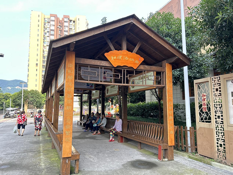 重慶市沙坪壩區(qū)回龍壩鎮(zhèn)聚龍城社區(qū)“和順茶館”是一間非民辦的多功能茶館:除了喝茶聊天,這里還融合了各職能部門下沉社區(qū)的十幾個辦公室功能,在這里每周定期為社區(qū)居民開展技能培訓、文化宣講、初心回顧,以及文娛表演等。一杯茶間,就為百姓提供了政策宣講、糾紛調解、法律咨詢等身邊服務。而且,這里還是百姓的“議事堂”“民意收集站”。