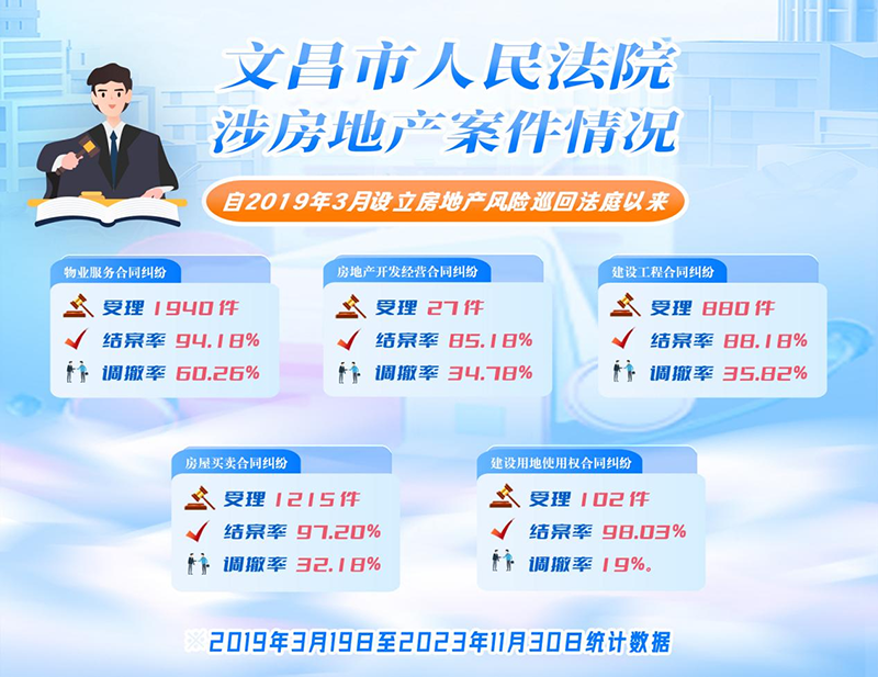 2023年11月,中央政法委在全國(guó)范圍內(nèi)評(píng)選出104個(gè)“楓橋式工作法”單位,文昌法院訴調(diào)聯(lián)動(dòng)化解房地產(chǎn)風(fēng)險(xiǎn)工作法位列其中。