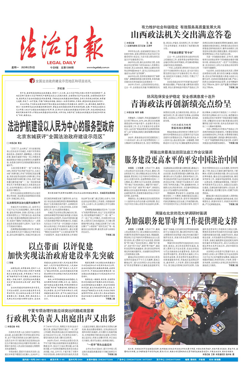 2023年2月6日,“全國法治政府建設(shè)示范地區(qū)和項(xiàng)目巡禮”專欄在《法治日報(bào)》1版開欄