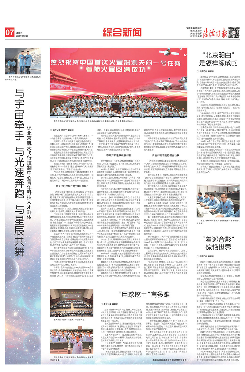 2023年2月1日《法治日報(bào)》7版,以整版報(bào)道展現(xiàn)北京航天飛行控制中心青年科技英才風(fēng)采