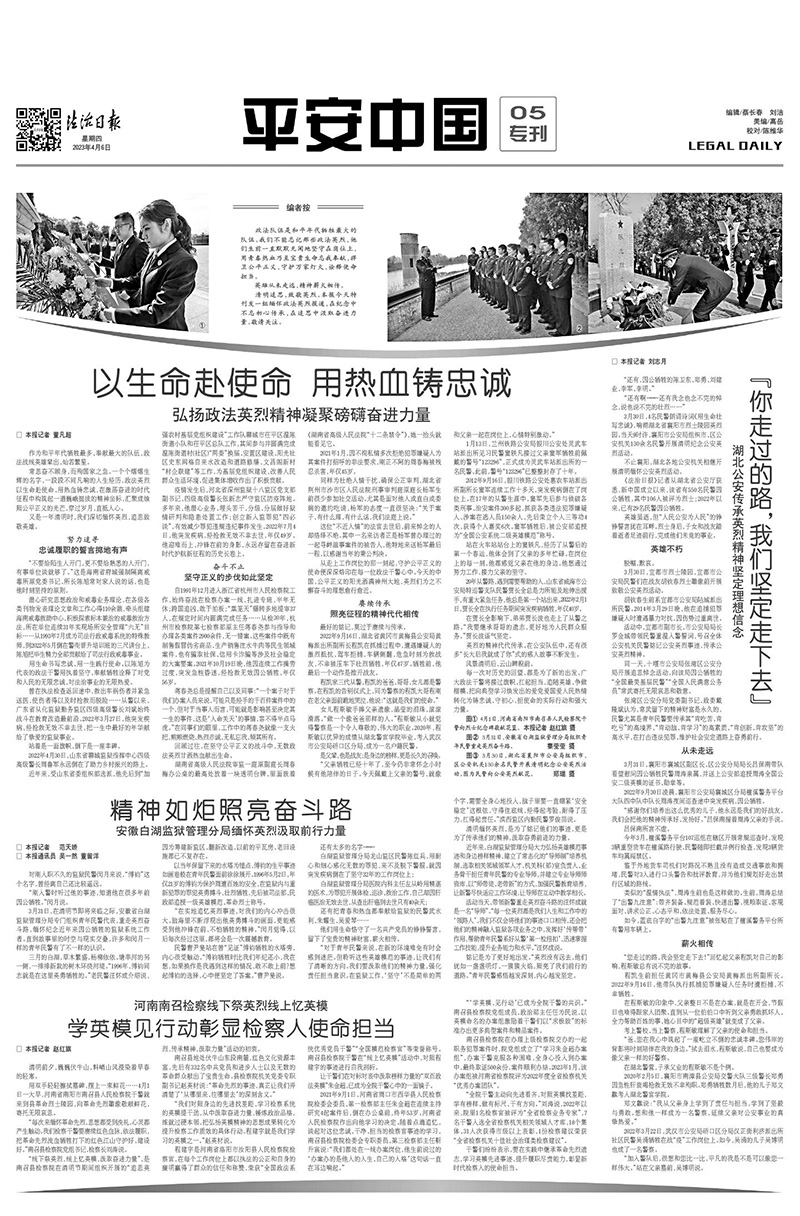 開設(shè)“全國模范人民調(diào)解委員會(huì)和人民調(diào)解員”“2023‘全國五一勞動(dòng)獎(jiǎng)?wù)隆蓭煿适隆薄皞鞒泻秃霌P(yáng)愛國主義精神”等一大批專欄、專題,強(qiáng)化中國人民警察節(jié)、清明節(jié)等重要時(shí)間節(jié)點(diǎn)選題策劃,大力加強(qiáng)先進(jìn)典型選樹宣傳,引導(dǎo)社會(huì)各界自覺踐行社會(huì)主義核心價(jià)值觀。