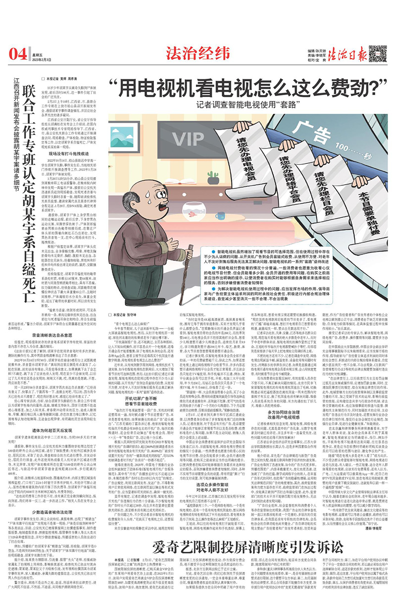 《“用電視機(jī)看電視怎么這么費(fèi)勁?”記者調(diào)查智能電視使用“套路”》稿件一經(jīng)發(fā)布,迅速?zèng)_上微博熱搜榜,引發(fā)大量轉(zhuǎn)載。2月7日,中國網(wǎng)絡(luò)視聽節(jié)目服務(wù)協(xié)會(huì)發(fā)布關(guān)于規(guī)范智能電視收費(fèi)行為倡議書