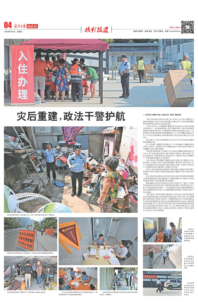 2023年8月27日《法治日報(bào)·社區(qū)版》4版《災(zāi)后重建,政法干警護(hù)航》攝影專版