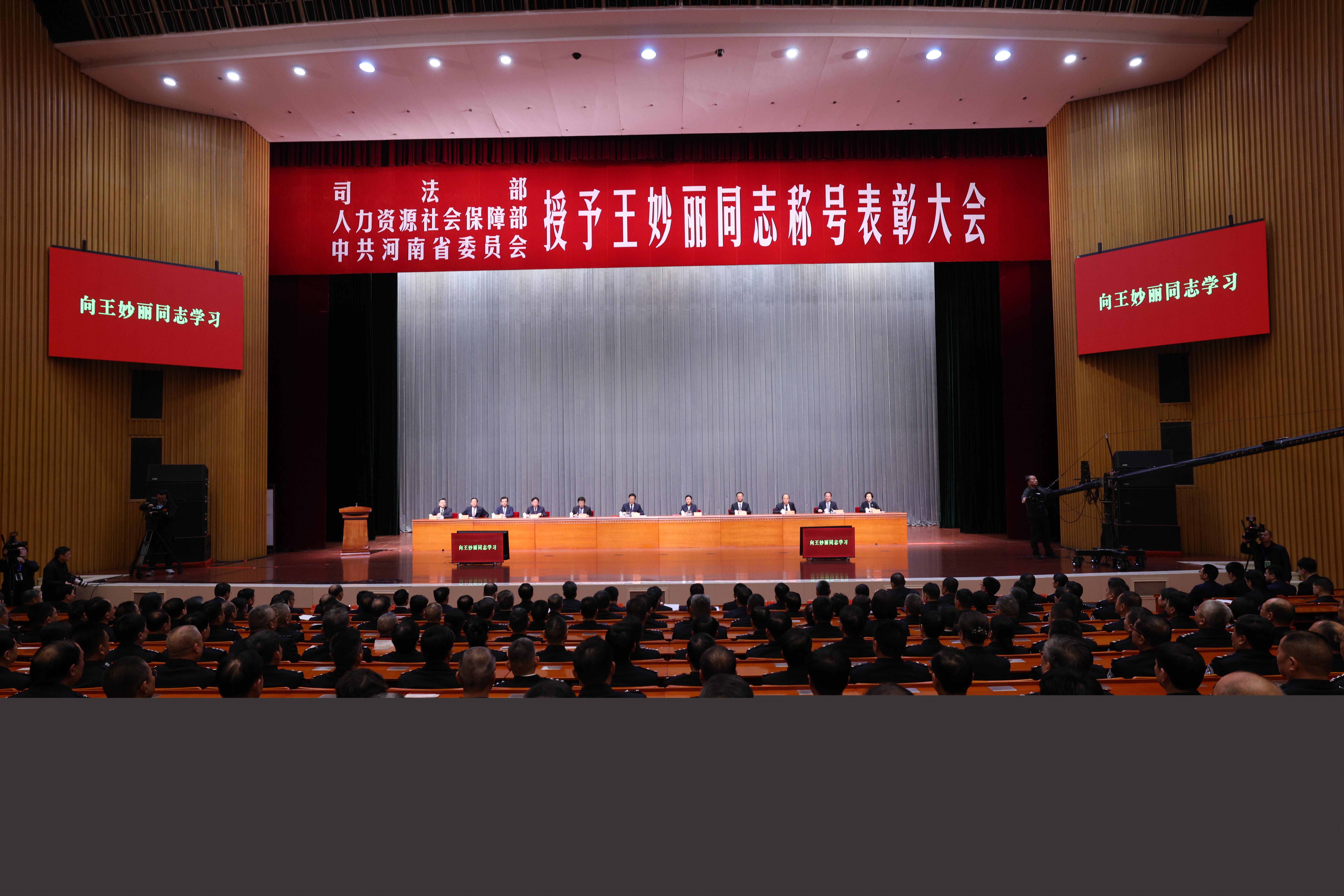 司法部、人力資源社會保障部、河南省委召開表彰大會 授予王妙麗同志“全國司法行政系統(tǒng)一級英雄模范”“河南省優(yōu)秀共產(chǎn)黨員”稱號