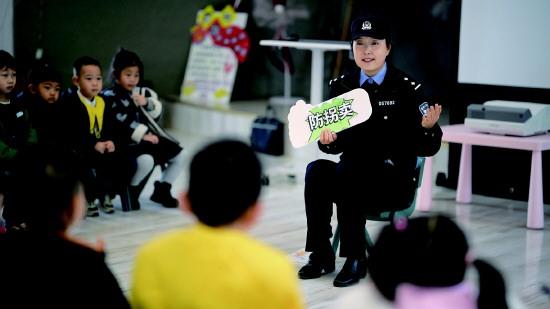 圖為陜西省西安市公安局西咸新區(qū)分局渭城派出所社區(qū)民警第艷妮走進(jìn)西北電力建設(shè)第四工程有限公司幼兒園,向孩子們講解防拐賣知識(shí)。