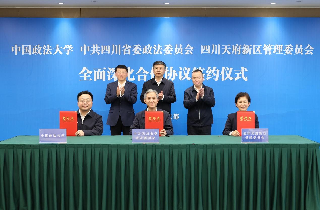 簽署《中共四川省委政法委員會 四川天府新區(qū)管理委員會 中國政法大學全面深化合作協議》。