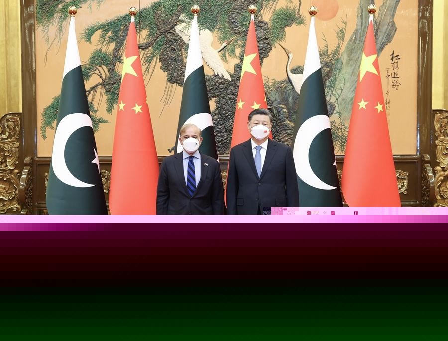 11月2日上午,國(guó)家主席習(xí)近平在北京人民大會(huì)堂會(huì)見(jiàn)來(lái)華進(jìn)行正式訪問(wèn)的巴基斯坦總理夏巴茲。新華社記者 謝環(huán)馳 攝