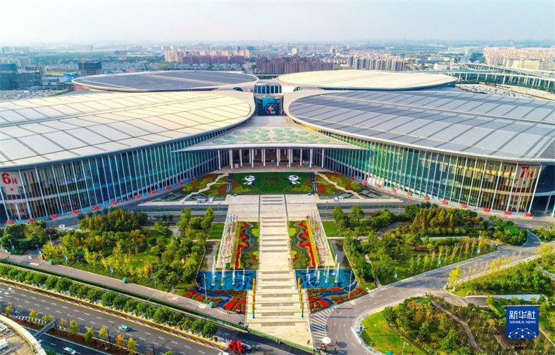 3日的上海,秋高氣爽,形似“四葉草”的國家會展中心(上海)裝點(diǎn)一新。