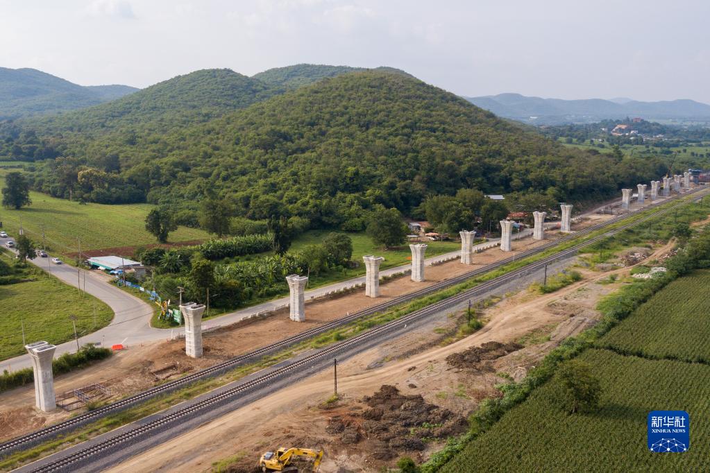 這是位于泰國(guó)呵叻的中泰鐵路建設(shè)現(xiàn)場(chǎng)(2022年9月7日攝,無(wú)人機(jī)照片)。新華社記者 林昊 攝