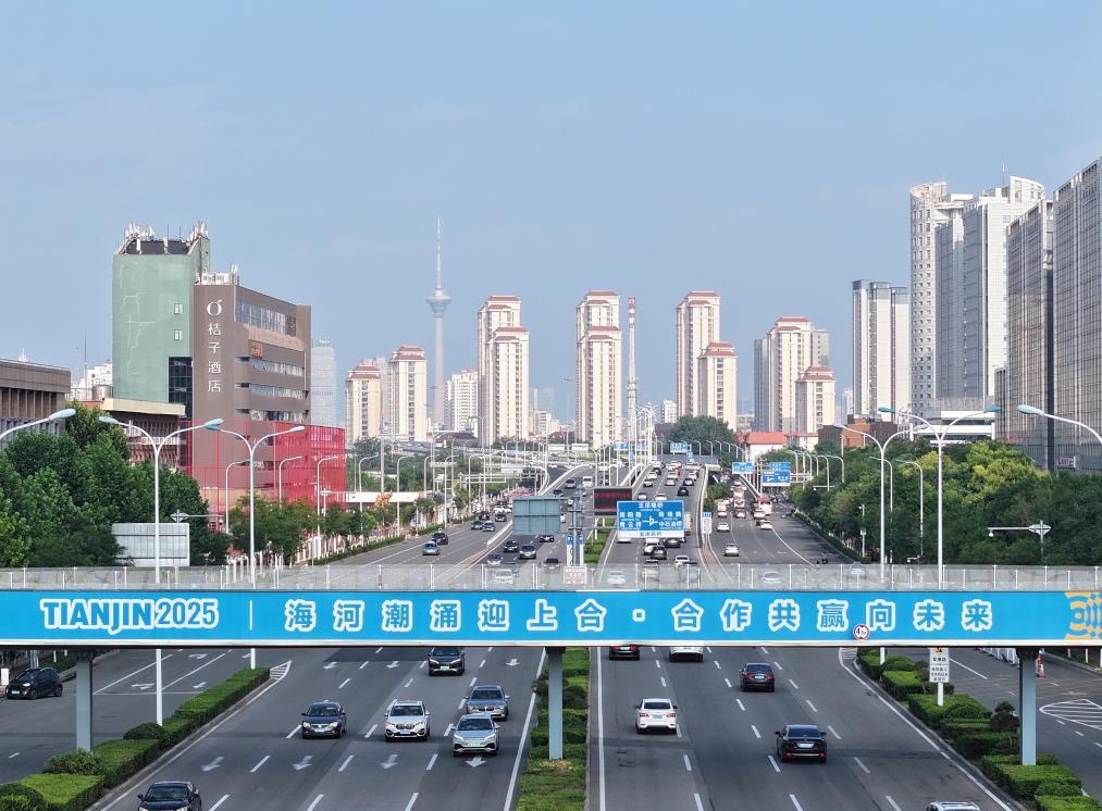 這是8月25日在天津中心城區(qū)拍攝的街景。新華社記者孫凡越攝