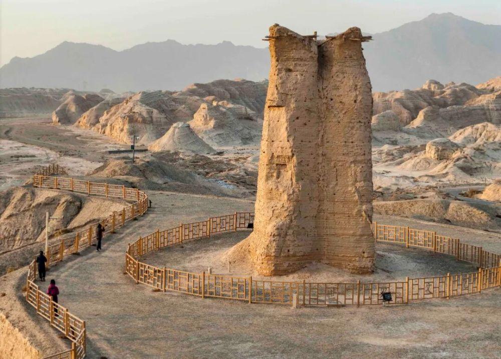 克孜爾尕哈烽燧(無人機(jī)照片)。新華社記者 胡虎虎 攝