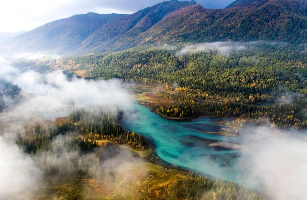 無人機(jī)拍攝的喀納斯景區(qū)風(fēng)光。新華社記者 王菲 攝