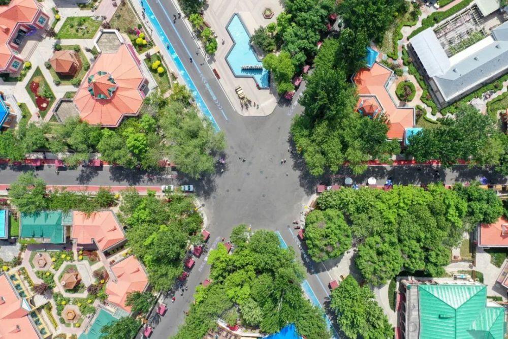 在伊犁哈薩克自治州伊寧市拍攝的六星街景區(qū)中心廣場(無人機(jī)照片)。新華社記者 丁磊 攝