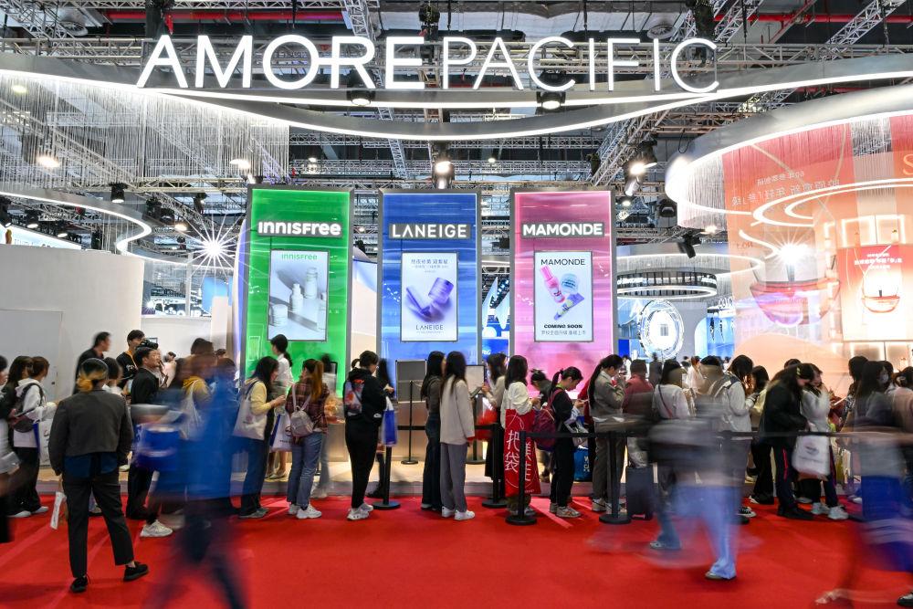 這是在上海舉行的第七屆中國(guó)國(guó)際進(jìn)口博覽會(huì)消費(fèi)品展區(qū)拍攝的愛茉莉太平洋展位(2024年11月7日)。韓國(guó)化妝品企業(yè)愛茉莉太平洋已連續(xù)七年參加進(jìn)博會(huì),為中國(guó)消費(fèi)者提供多元化產(chǎn)品。