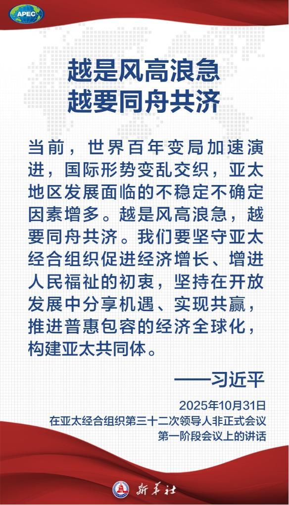 當?shù)貢r間10月31日上午,國家主席習近平在韓國慶州出席亞太經(jīng)合組織第三十二次領導人非正式會議,發(fā)表題為《共建普惠包容的開放型亞太經(jīng)濟》的重要講話。關于亞太發(fā)展,習近平主席說——