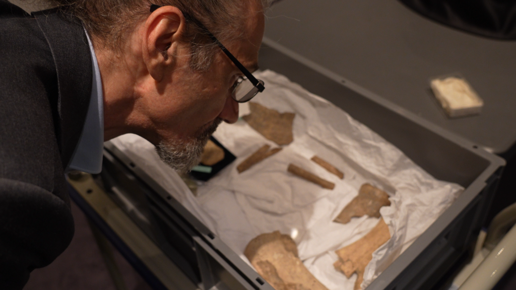 法國賽努奇博物館珍藏著15片甲骨。中國研究團(tuán)隊帶來高清攝影設(shè)備,從48個角度打光,為每一枚甲骨片留下96張照片?!拔覀兒芨吲d參與這一項目。這對中國文明史很重要,對世界文明史同樣重要?!辟惻娌┪镳^館長埃里克·勒菲弗說。