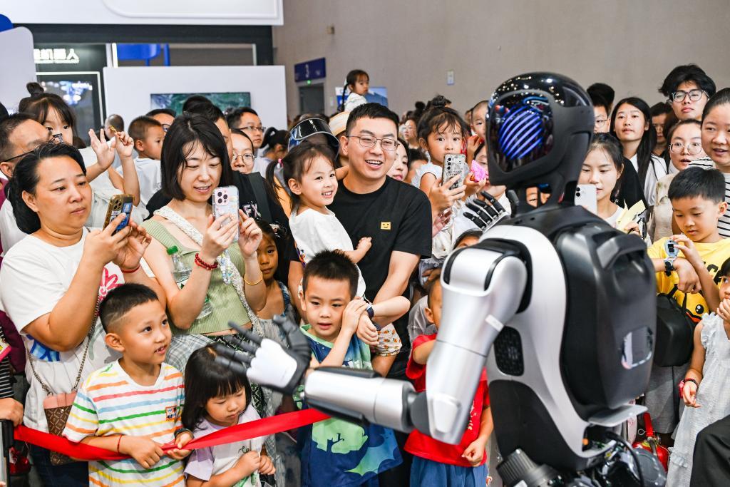 9月7日,觀(guān)眾在智博會(huì)上參觀(guān)人形機(jī)器人。新華社記者王全超攝
