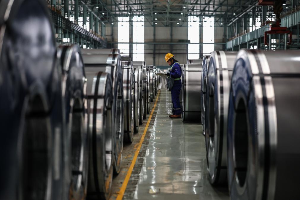 2025年12月6日,工作人員在本鋼板材冷軋總廠第三冷軋廠成品庫核對(duì)清點(diǎn)產(chǎn)品。新華社記者 潘昱龍 攝