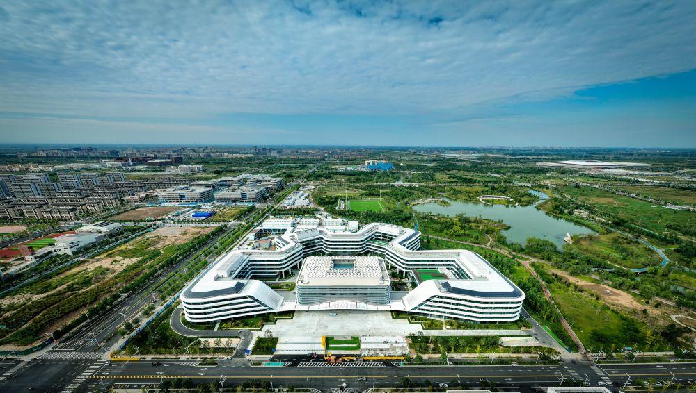 2023年6月30日,中共中央政治局召開會(huì)議,審議《關(guān)于支持高標(biāo)準(zhǔn)高質(zhì)量建設(shè)雄安新區(qū)若干政策措施的意見》。此后,一攬子特殊支持政策陸續(xù)落地雄安新區(qū)。2023年10月16日,雄安宣武醫(yī)院開診。首都醫(yī)科大學(xué)宣武醫(yī)院派來(lái)管理團(tuán)隊(duì)及骨干醫(yī)生,重點(diǎn)服務(wù)疏解人員和新區(qū)群眾,并輻射京津冀地區(qū)。這是2023年9月30日拍攝的雄安宣武醫(yī)院(無(wú)人機(jī)照片)。