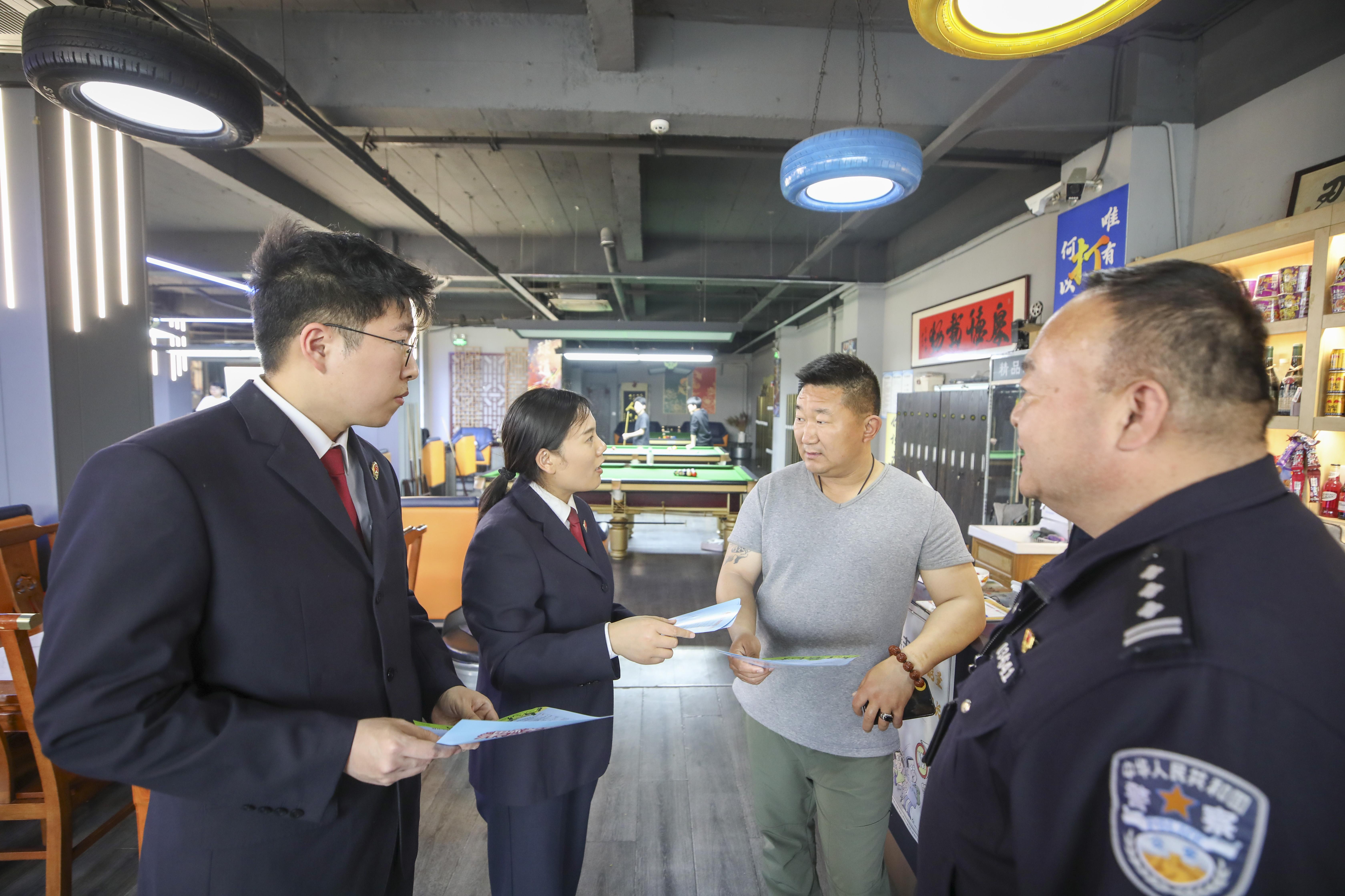 時(shí)值江蘇省中小學(xué)生“春假”期間,江蘇省徐州市泉山區(qū)人民檢察院聯(lián)合公安機(jī)關(guān),深入轄區(qū)娛樂場所,向臺球室經(jīng)營者詳細(xì)講解強(qiáng)制報(bào)告的法律意義與社會(huì)意義及報(bào)告流程,告知禁止向未成年人銷售煙酒,遇到未成年人權(quán)益被侵犯或疑似被侵犯,要及時(shí)制止并報(bào)告,共同筑牢未成年人安全防護(hù)網(wǎng)。據(jù)了解,活動(dòng)共發(fā)放《未成年人案件強(qiáng)制報(bào)告制度責(zé)任提示卡》60余份。