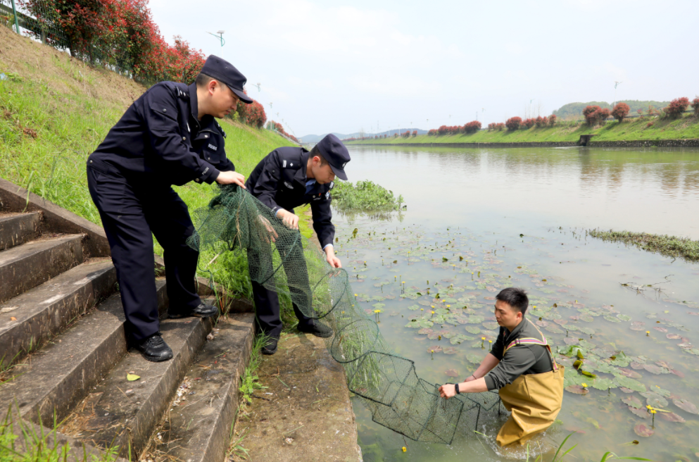 為有效保護(hù)漁業(yè)資源和水域生態(tài)環(huán)境,近日,江西省分宜縣公安局聯(lián)合楊橋鎮(zhèn)綜合行政執(zhí)法隊(duì)開展“護(hù)漁清網(wǎng)”行動,對水下“地籠網(wǎng)”等非法捕撈漁具進(jìn)行全面清理,對網(wǎng)內(nèi)捕獲的漁獲物進(jìn)行現(xiàn)場放流。
